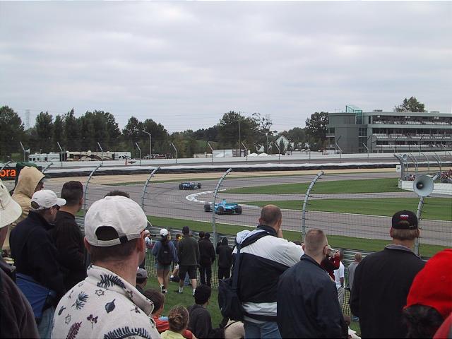 A Benetton chasing a Sauber through turn 11, Friday practice. I believe it is Button chasing Heidfeld.
