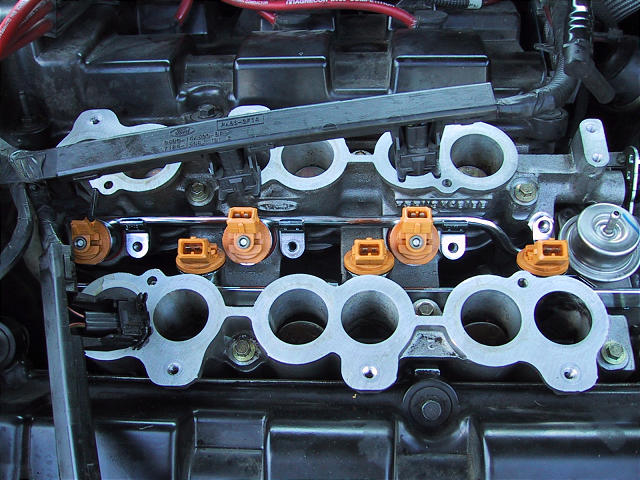 Fuel rail in place, ready to be bolted on.